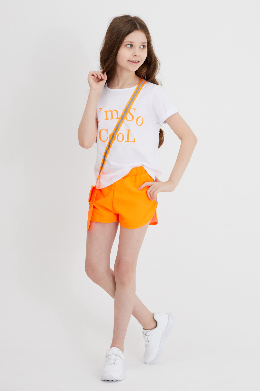 ÇİKOBY BASKILI ÇANTA AKSESUARLI BEYAZ TSHİRT+ORANJ ŞORT KIZ ÇOCUK TAKIM
